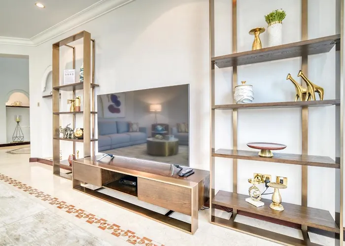 Ubicada en el barrio Palm Jumeirah de Dubái, se tarda 35 minutos en coche en llegar al Aeropuerto Dubai Creek SPB. The Locale, con platos exquisitos, está aproximadamente a 25 minutos a pie de esta villa frente a la playa.